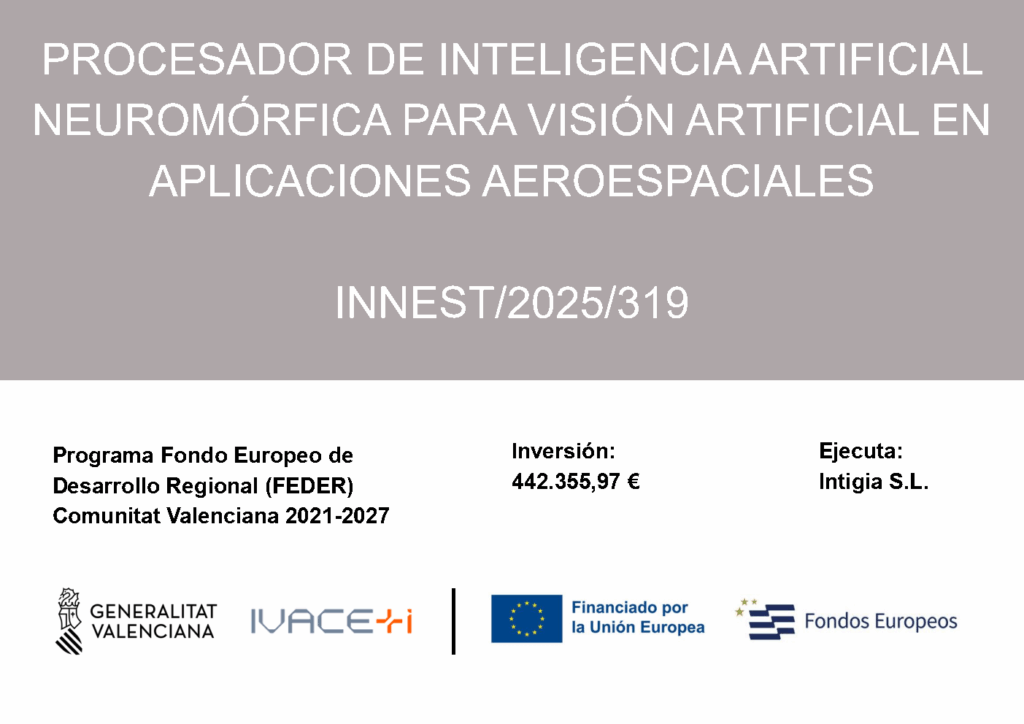 - El proyecto NeuroAI4Space está financiado por la Unión Europea a través del Programa FEDER Comunitat Valenciana 2021-2027, en el marco de las convocatorias de IVACE+i Innovación – Proyectos Estratégicos en Cooperación (Referencia INNEST/2025/319), coordinado por Intigia y participan las empresas Intigia y EMXYS, así como la Universidad Politécnica de Valencia y la Universidad de Alicante.